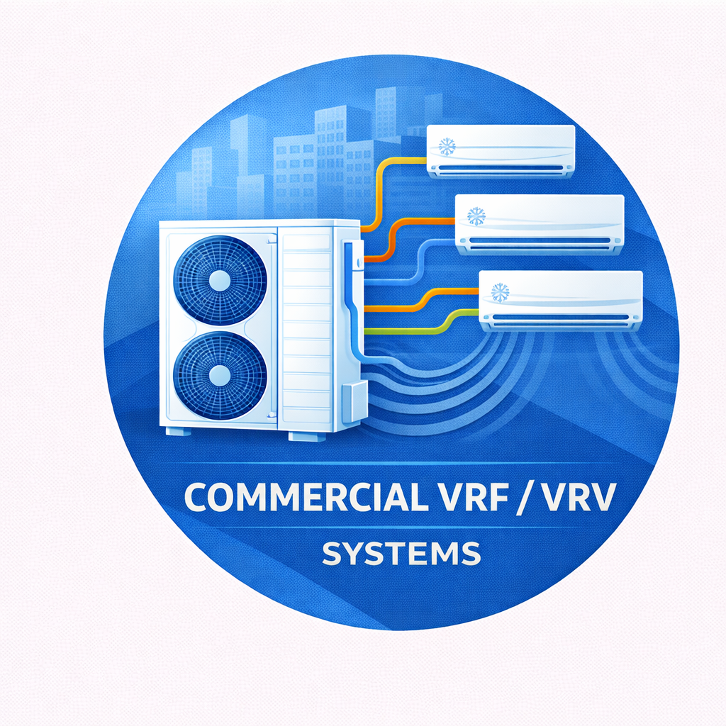 ProTech Climate provides installation, service, and maintenance for VRF and VRV systems used in offices, retail spaces, and multi-zone commercial environments. These systems provide exceptional energy efficiency, precise temperature control, and flexible zoning options for modern buildings.